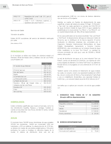 Existen 46,333 suscriptores del servicio de televisión restringida y "Del Potosí", el abastecimiento del agua se realiza por medio de
