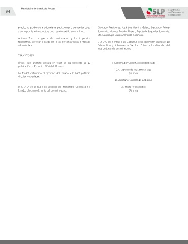 alguno por la infraestructura que haya invertido en el mismo. Secretario: Vicente Toledo Álvarez, Diputada Segunda Secretaria: