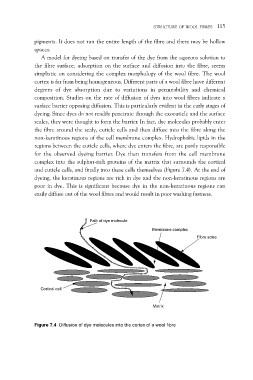 Figure 7.4 Diffusion of dye molecules into the cortex of a wool fibre