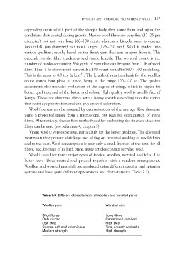 Table 7.3 Different characteristics of woollen and worsted yarns