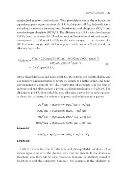 Table 8.3 relates the total (T) alkalinity and phenolphthalein alkalinity (P) of