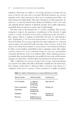 Table 1.2 Outline of the production of a dyed knitted fabric of cotton