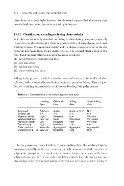 Table 13.1 Characteristics of the various types of acid dyes