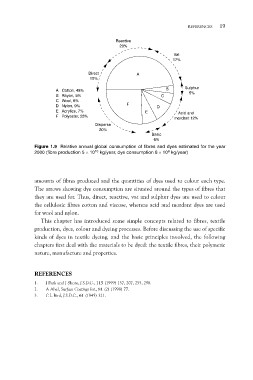 Figure 1.9 Relative annual global consumption of fibres and dyes estimated for the year