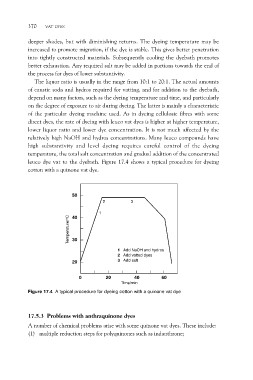 leuco dye vat to the dyebath. Figure 17.4 shows a typical procedure for dyeing