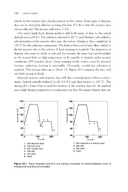 Figure 20.1 Rapid stepwise and all-in-one dyeing processes for cotton/polyester (time of