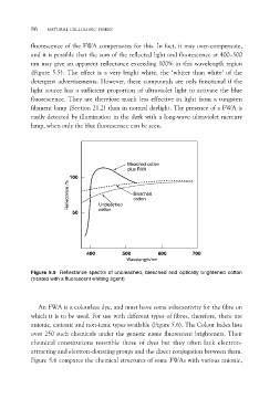Figure 5.5 Reflectance spectra of unbleached, bleached and optically brightened cotton