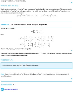 EXAMPLE 6 The Product of a Matrix and Its Transpose Is Symmetric