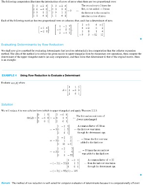 Remark The method of row reduction is well suited for computer evaluation of determinants because it is computationally efficient