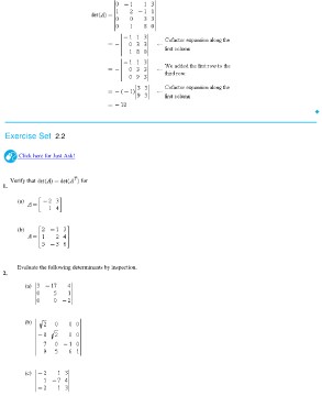 Exercise Set 2.2 Click here for Just Ask! Verify that for 1. (a) (b) Evaluate the following determinants by inspection. 2. (a) (b) (c)