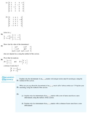(a) Explain why the determinant of an matrix with a row of zeros must have a zero