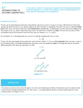 3.1 In this section, vectors in 2-space and 3-space will be introduced geometrically,