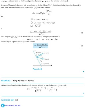 By virtue of Example 5, the vector n is perpendicular to the line (Figure 3.3.8). As indicated in the figure, the distance D is
