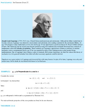 is orthogonal to both u and v, as guaranteed by Theorem 3.4.1.