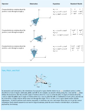 described in terms of angles called yaw, pitch, and roll. If, for example, an aircraft is flying along the y-axis and the -plane
