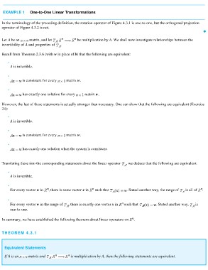 In the terminology of the preceding definition, the rotation operator of Figure 4.3.1 is one-to-one, but the orthogonal projection