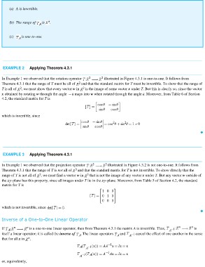 Theorem 4.3.1 that the range of T is not all of and that the standard matrix for T is not invertible. To show directly that the