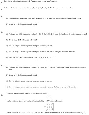 (a) Find a polynomial interpolant to the data (−2, −10), (−1, 2), (1, 2), (2, 14) using the Vandermonde system approach