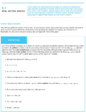 REAL VECTOR SPACES Thus, when a set of objects satisfies these axioms, they will automatically