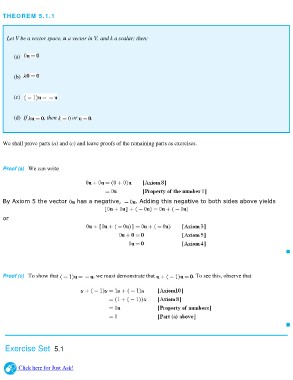 By Axiom 5 the vector has a negative, . Adding this negative to both sides above yields