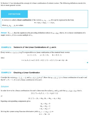 Remark If , then the equation in the preceding definition reduces to ; that is, w is a linear combination of a