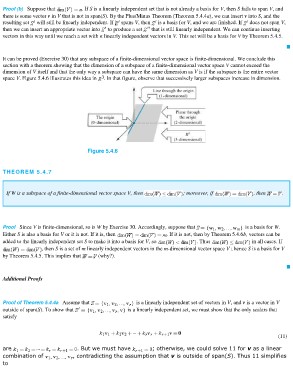 Proof of Theorem 5.4.4a Assume that is a linearly independent set of vectors in V, and v is a vector in V