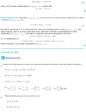 Proof of Theorem 5.4.4b Assume that is a set of vectors in V, and to be specific, suppose that is a linear