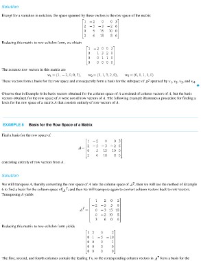 vectors obtained for the row space of A were not all row vectors of A. The following example illustrates a procedure for finding a