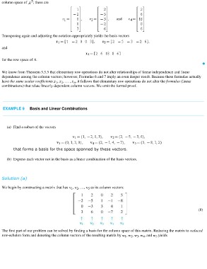 row-echelon form and denoting the column vectors of the resulting matrix by , , , , and yields
