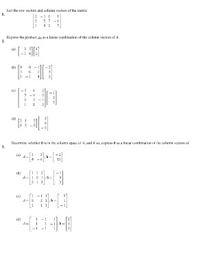 Determine whether b is in the column space of A, and if so, express b as a linear combination of the column vectors of