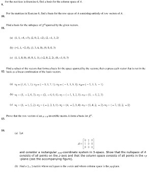 For the matrices in Exercise 6, find a basis for the row space of A consisting entirely of row vectors of A.