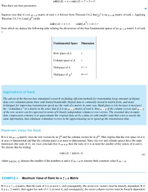 from which we deduce the following table relating the dimensions of the four fundamental spaces of an matrix A of rank