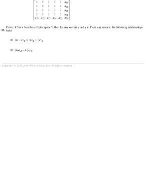 Prove: If S is a basis for a vector space V, then for any vectors and in V and any scalar k, the following relationships 15. hold: (a) (b) Copyright © 2005 John Wiley & Sons, Inc. All rights reserved.