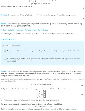 Assume first that v is orthogonal to every vector in the row space of A. Then in particular, v is orthogonal to the row vectors ,