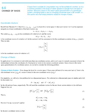 CHANGE OF BASIS another. Because a basis is the vector space generalization of a coordinate