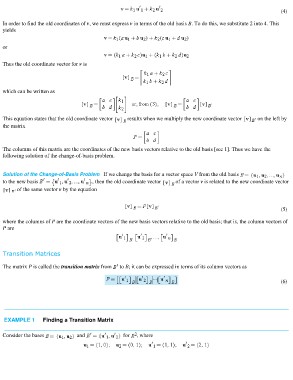 The matrix P is called the transition matrix from to B; it can be expressed in terms of its column vectors as