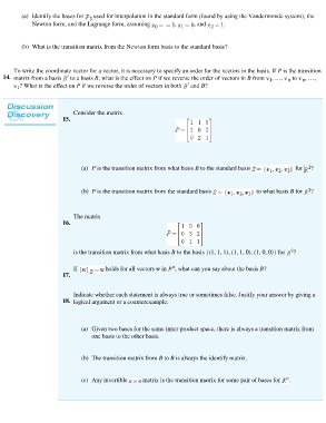 (b) P is the transition matrix from the standard basis to what basis B for ?