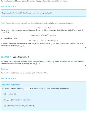 The next theorem establishes a relationship between the eigenvalues and the invertibility of a matrix.