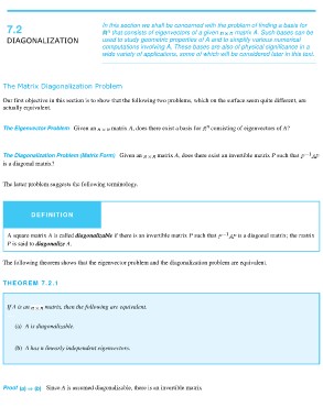 DIAGONALIZATION that consists of eigenvectors of a given matrix A. Such bases can be