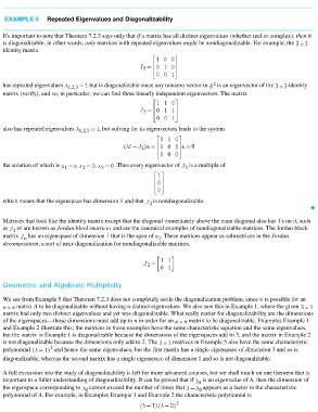 matrix A to be diagonalizable without having n distinct eigenvalues. We also saw this in Example 1, where the given