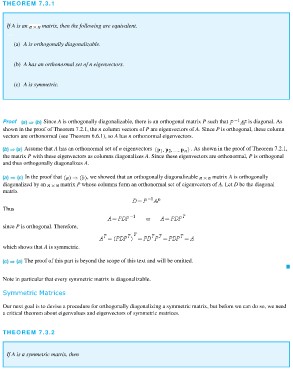 Proof Since A is orthogonally diagonalizable, there is an orthogonal matrix P such that is diagonal. As