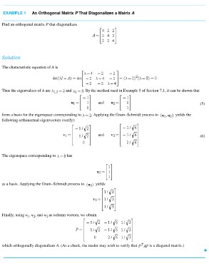 EXAMPLE 1 An Orthogonal Matrix P That Diagonalizes a Matrix A