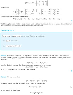The following theorem shows that a composition of one-to-one linear transformations is one-to-one, and it relates the inverse
