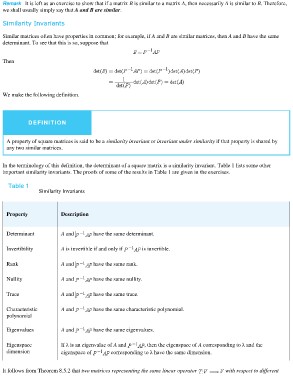 A property of square matrices is said to be a similarity invariant or invariant under similarity if that property is shared by