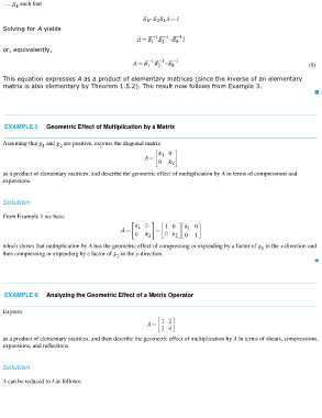 as a product of elementary matrices, and then describe the geometric effect of multiplication by A in terms of shears, compressions,