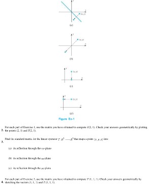 For each part of Exercise 1, use the matrix you have obtained to compute T(2, 1). Check your answers geometrically by plotting
