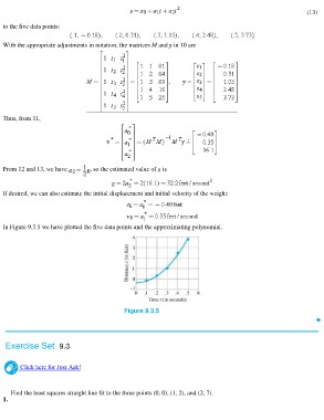 In Figure 9.3.5 we have plotted the five data points and the approximating polynomial.