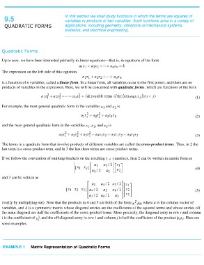 products of variables in the expression. Here, we will be concerned with quadratic forms, which are functions of the form
