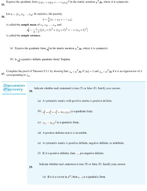 (a) Express the quadratic form in the matrix notation , where A is symmetric.
