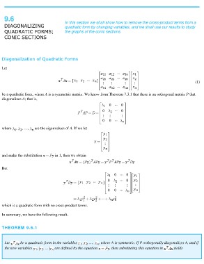 be a quadratic form, where A is a symmetric matrix. We know from Theorem 7.3.1 that there is an orthogonal matrix P that